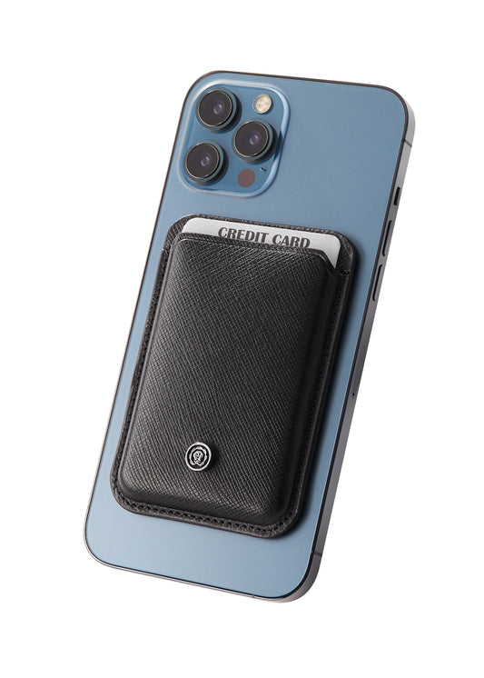 Classic Black Leather Magnetic Card Holder
