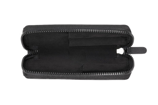 Century II Black Lacquer with Chrome Ballpoint Pen with Classic Black Zippered Leather Double Pen Case Gift Set