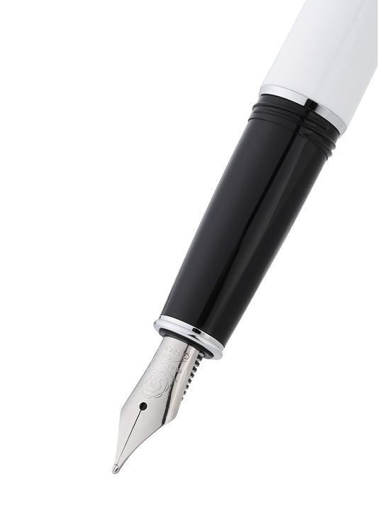 Lume Porcelain White with Polished Chrome Appointments and Polished Chrome Stainless Steel Medium Nib Fountain Pen