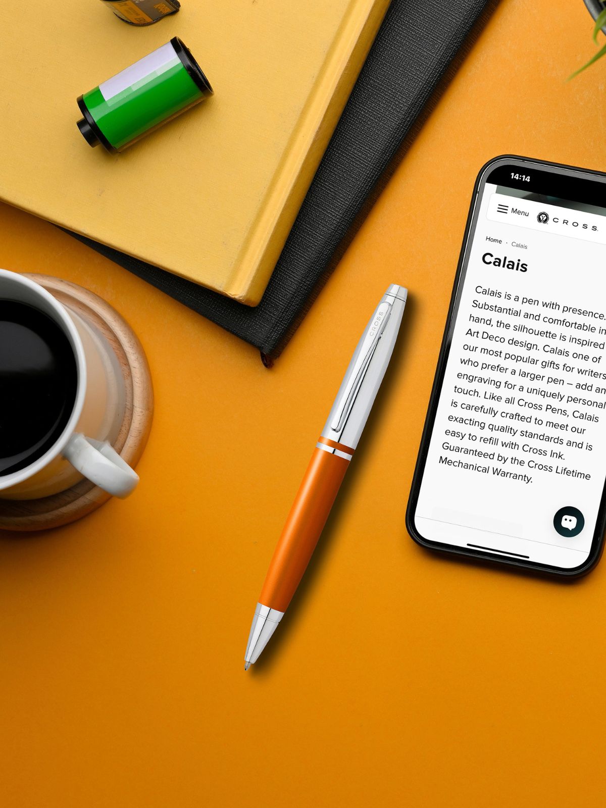 Calais is inspired by Art Deco design, with its asymmetrical tapered profile, polished chrome appointments, and striking finishes. The latest addition, Metallic Exuberance Orange, offers a radiant, glittering look that captures the spirit of creativity, reinvention, and self-expression. Bold yet refined, this finish embodies the excitement of stepping into a new era while staying rooted in timeless Cross craftsmanship. A modern take on classic design, Calais continues to appeal to those who want a stylish everyday pen that reflects personality.